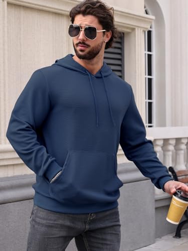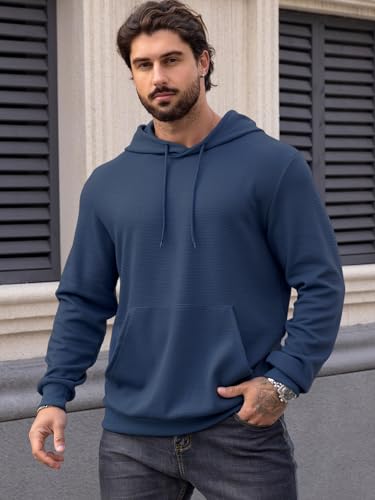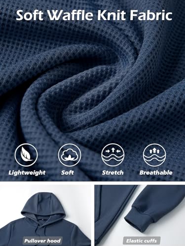 MANSDOUR Men’s Hoodie Casual Long Sleeve Waffle Knit Drawstring Hoodies Pullover Sweatshirts With Pocket