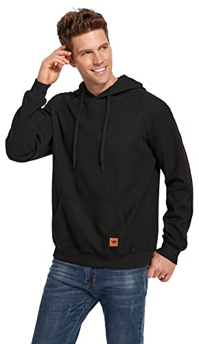 VICT POPU Hoodies For Men Pullover Long Sleeve hooded Plaid Jacquard With Big Pockets Solid Color Sweatshirt